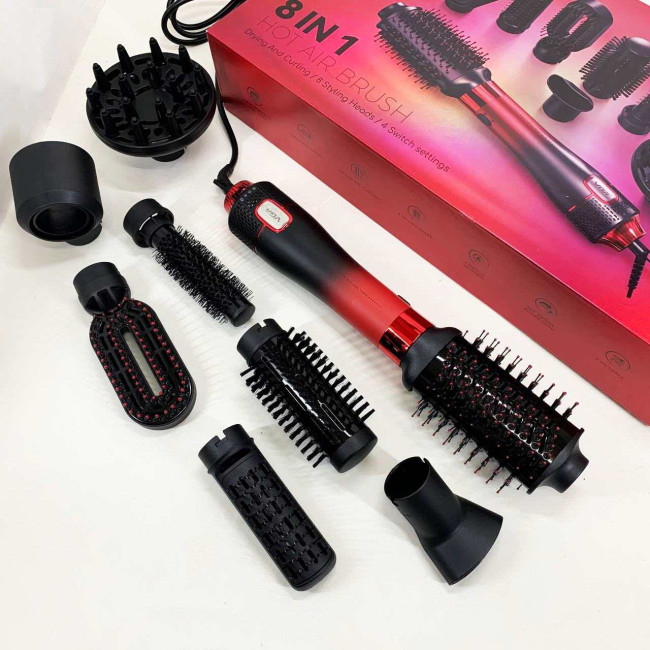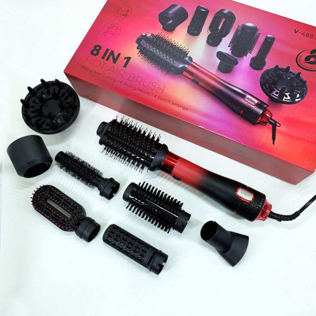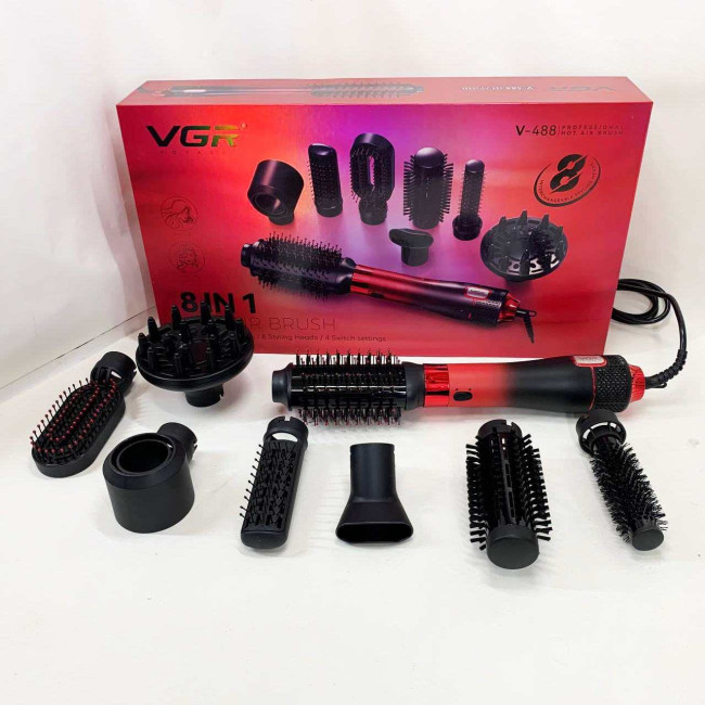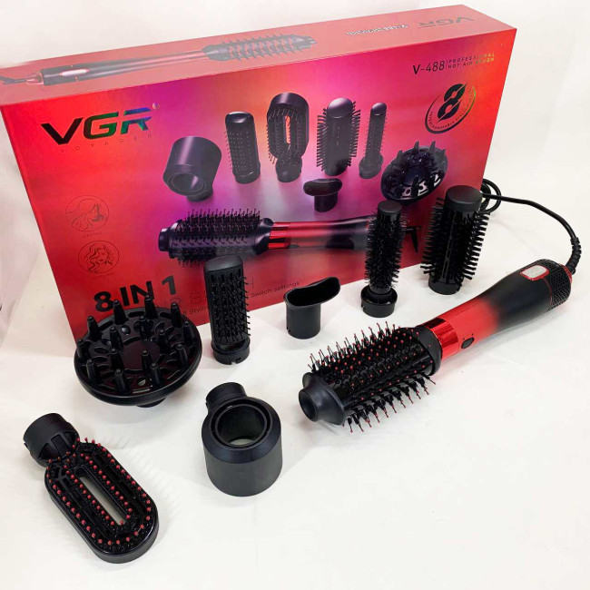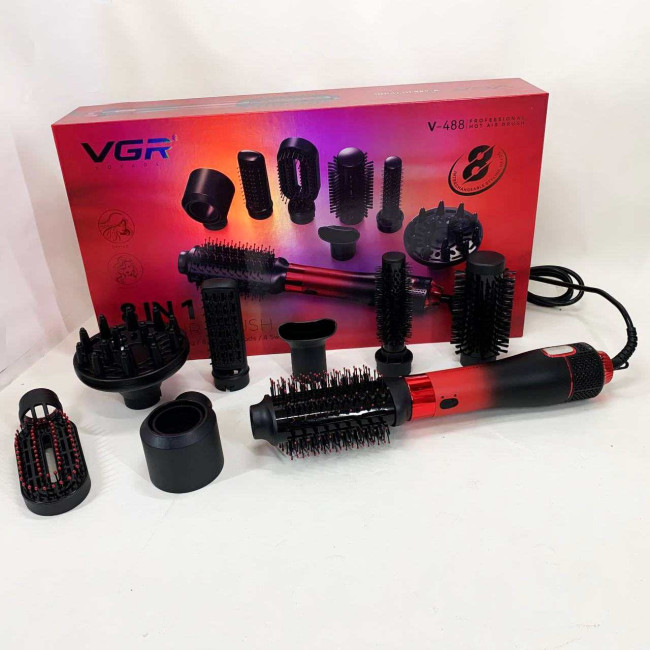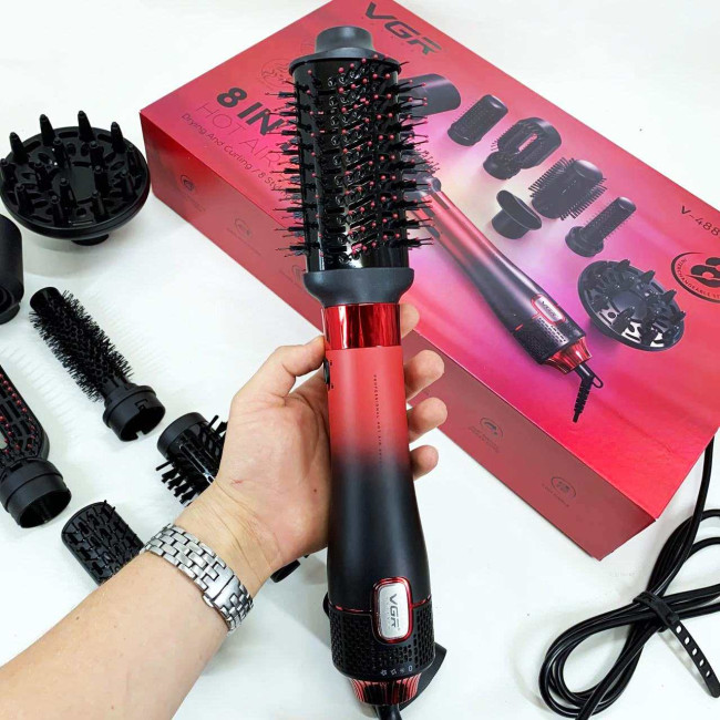 Фен-щітка стайлер VGR 8 в 1 V-488. Колір: червоний