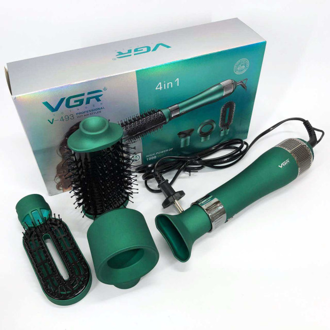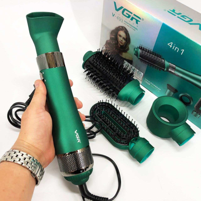 Фен-щітка VGR V-493 Мультистайлер 4в1 з насадками 1000 Вт професійний повітряний Браш Стайлер