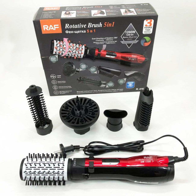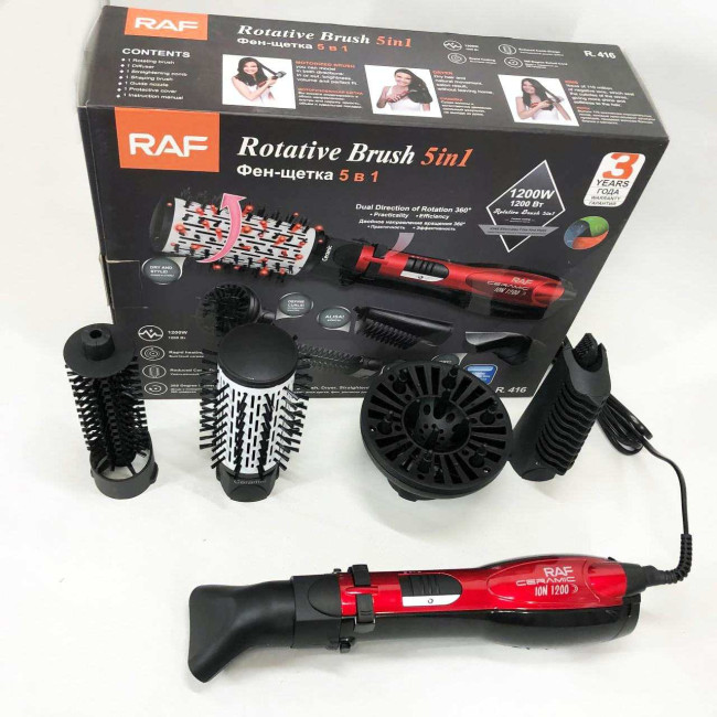 Фен стайлер RAF R.416 5в1 щітка гребінець для сушіння укладання волосся 1200 Вт