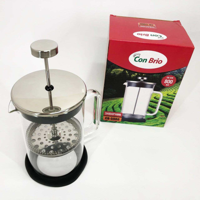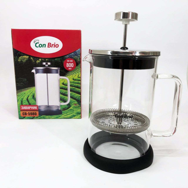 Френч-прес Con Brio CB-5980 800 мл, Чайник для заварювання трав, Заварник прозорий