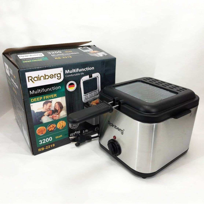Фритюрниця для домашнього використання від виробника техніки для кухні RAINBERG призначена для смаження у фритюрі картоплі фрі, крокетів, курячих ніжок, крилець, чіпсів, нагетсів та багатьох інших делікатесів. Красиві золоті хрусткий картопля. Завдяки фритюрниці ви можете готувати їхні будинки і будете набагато смачнішими та дешевшими, ніж ті, які купуються в магазині.