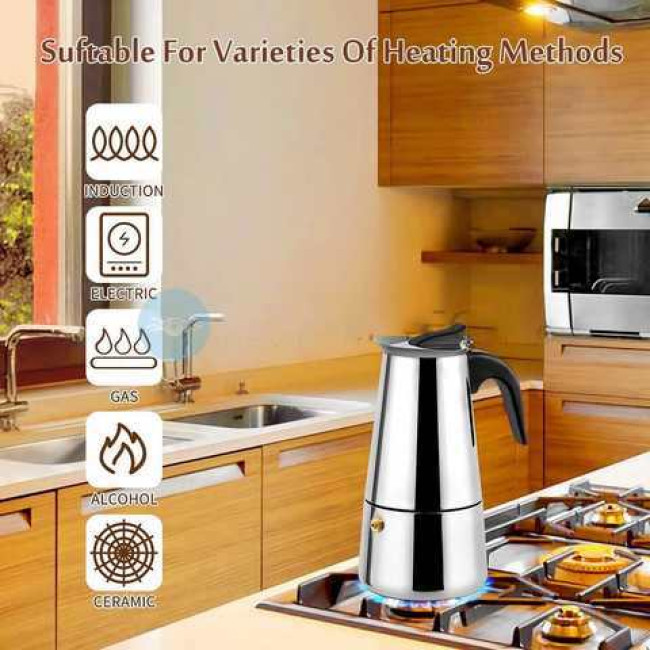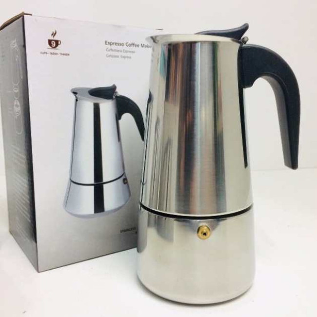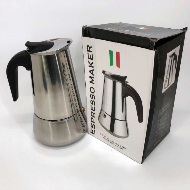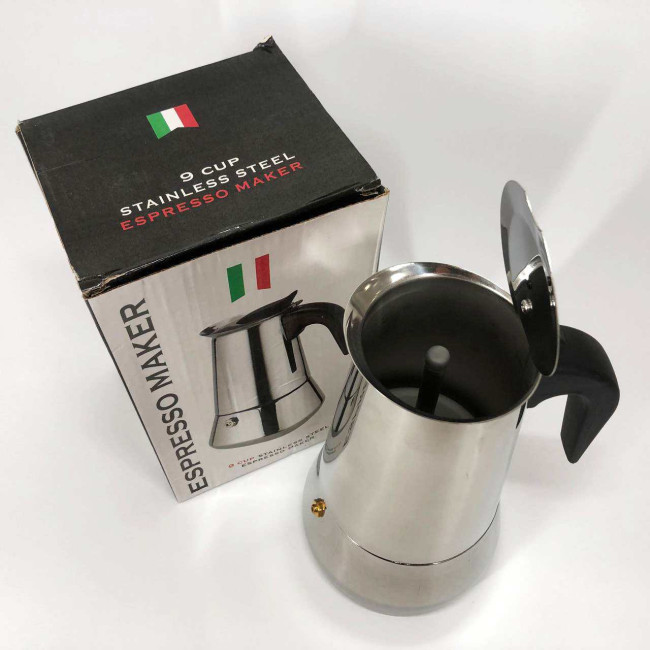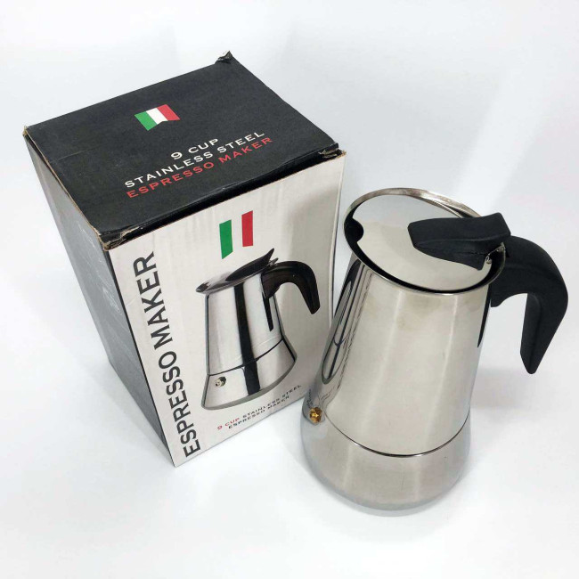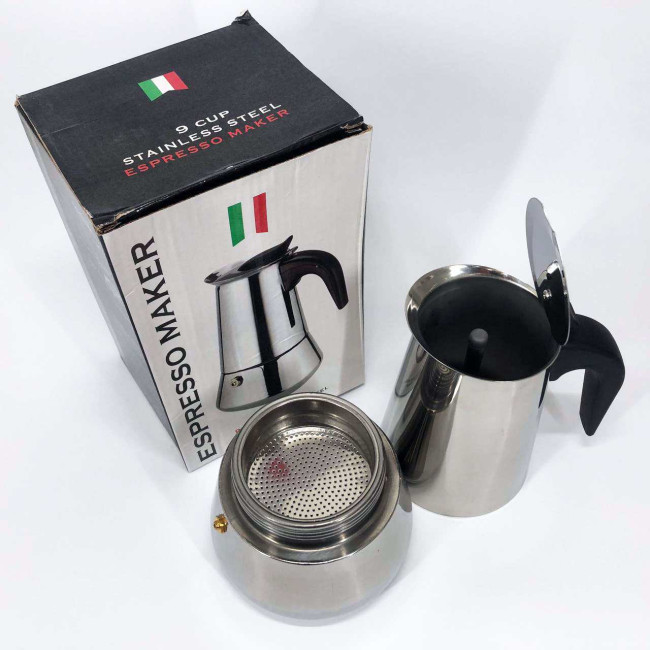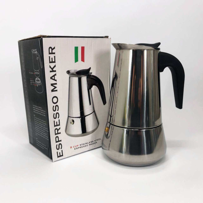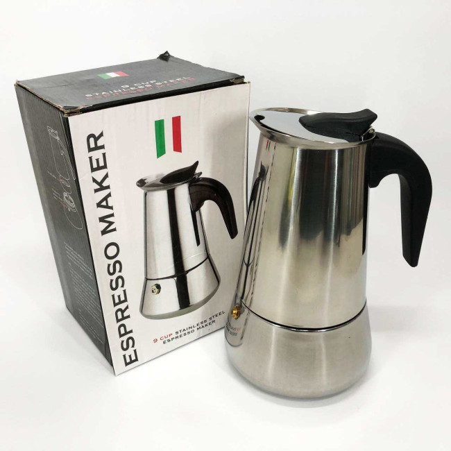 Гейзерна кавоварка UNIQUE UN-1903 на 9 чашок з нержавіючої сталі, гейзер для кави, кавник гейзерний