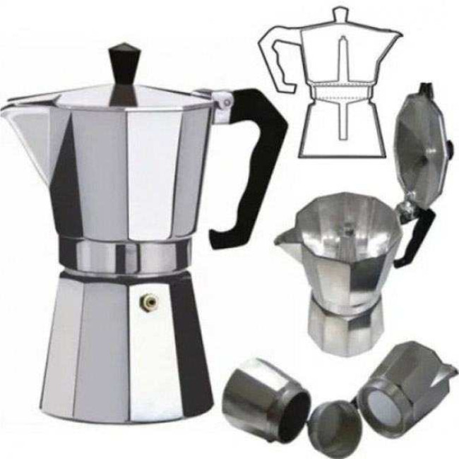 Ця кавоварка гейзерного типу складається з трьох основних частин – резервуара для води, фільтра для меленої кави та ємності для готового напою.