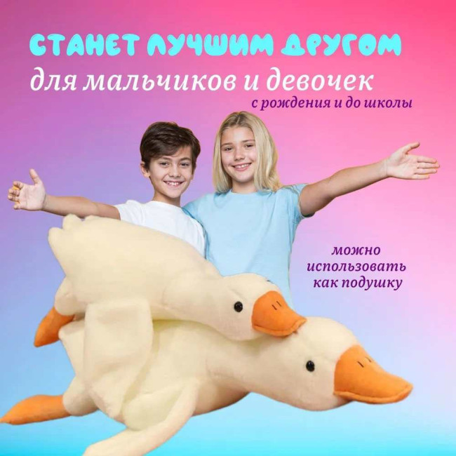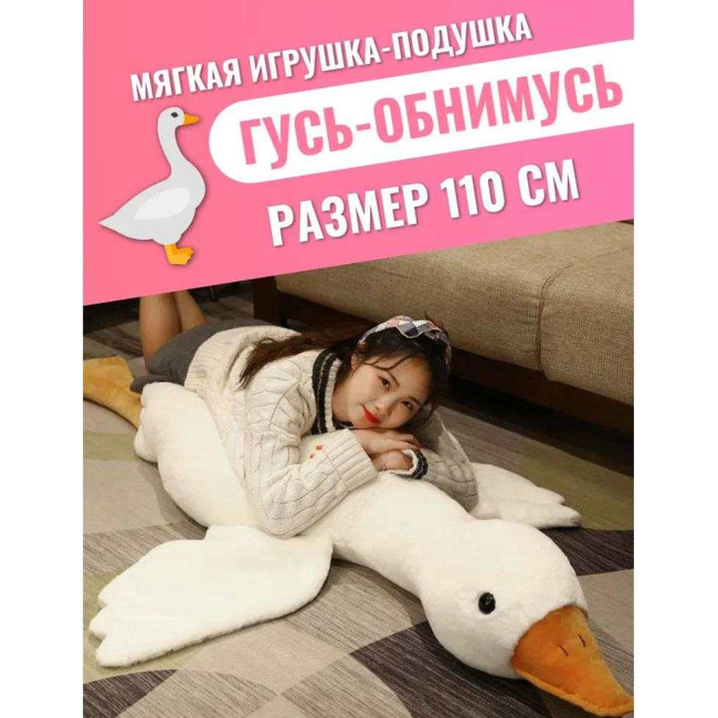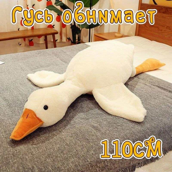 Гігантська м'яка плюшева іграшка Гусь-обіймусь 110 см білий подушка Гусь-обіймашка