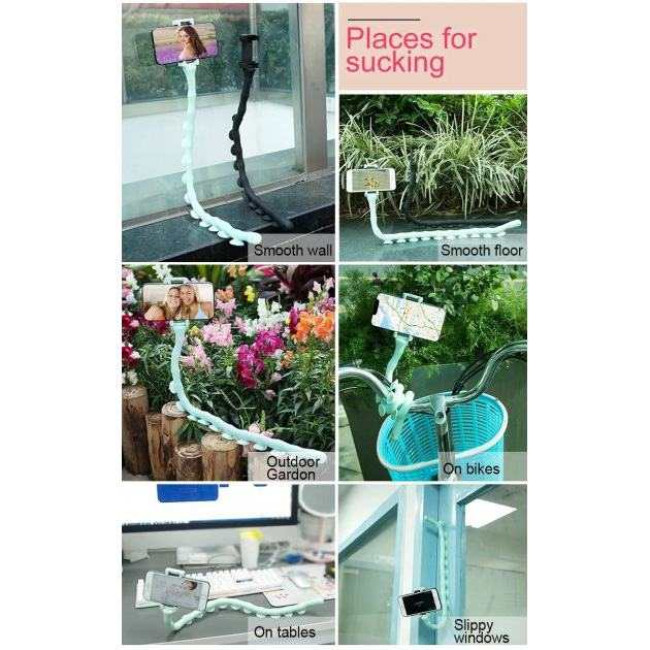 Гнучкий тримач із присосками для телефонів – це, насамперед, найзручніше пристосування. Завдяки присоскам, тримач кріпиться до всього: до монітора, полиці, гілки (якщо використовувати як штатив).
