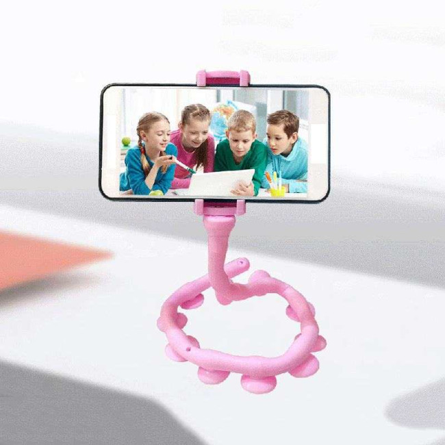 Гнучкий тримач для телефону з універсальними присосками Cute Worm Lazy Holder. Колір: рожевий