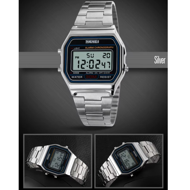 SKMEI 1123SI оснащено всім необхідним для щоденного використання: цифровий дисплей відображає час, дату, день тижня, є будильник, секундомір і LED-підсвітка. Водозахист 30M дозволяє не хвилюватися про бризки води, дощ або миття рук. Цей годинник — це ідеальне рішення для тих, хто шукає функціональний аксесуар з нотками ретро-стилю.