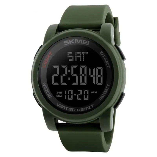 Годинник оснащено всіма необхідними функціями для щоденного використання: точна цифрова індикація часу, будильник з функцією повтору (SNZ), секундомір, автоматичний календар, підсвітка дисплея, формат часу 12/24 години, індикація дати та дня тижня. Завдяки водозахисту 5 ATM модель не боїться дощу, бризок або миття рук. SKMEI 1257AG — це ідеальний вибір для спорту, подорожей та повсякденного життя.