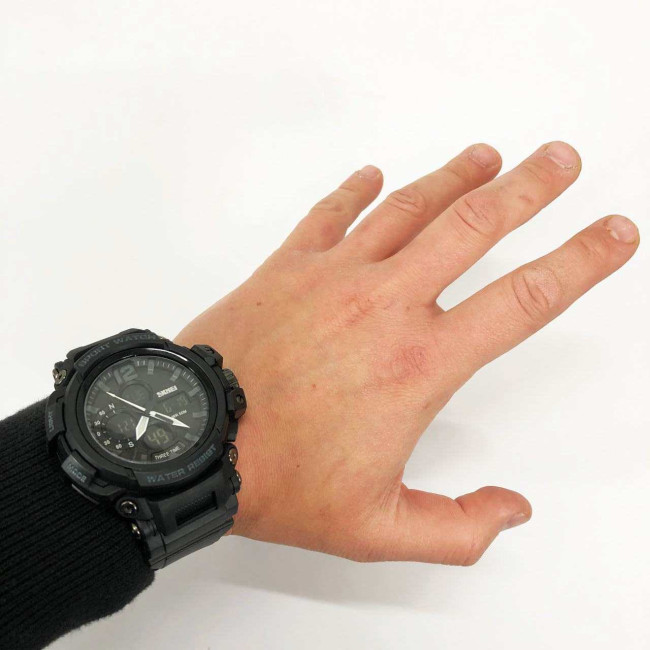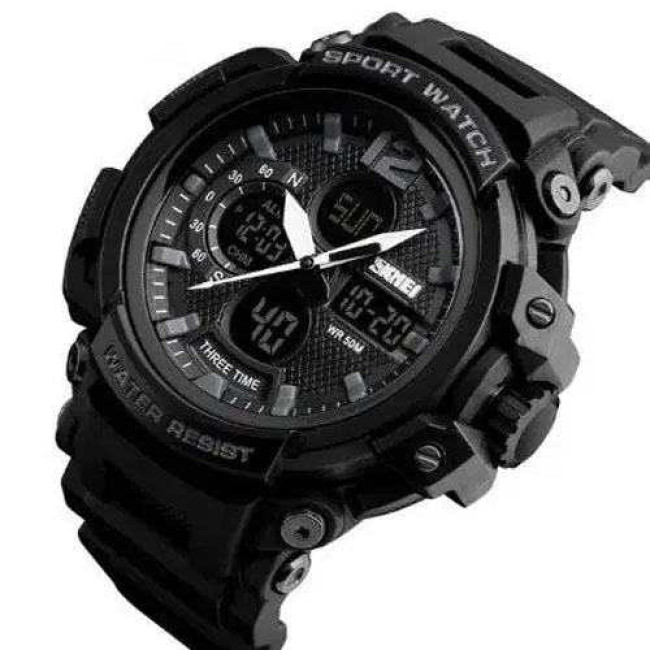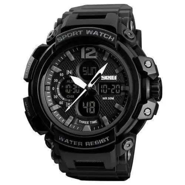 Годинник SKMEI 1343BK BLACK — це поєднання міцності, технологічності та стриманого чорного дизайну, яке підкреслює сучасний стиль власника. Його масивний корпус і багаторівневий циферблат із трьома цифровими зонами забезпечують не лише ефектний вигляд, а й зручне управління часом. Модель чудово підходить для активного способу життя, спорту або щоденного використання у міських умовах.