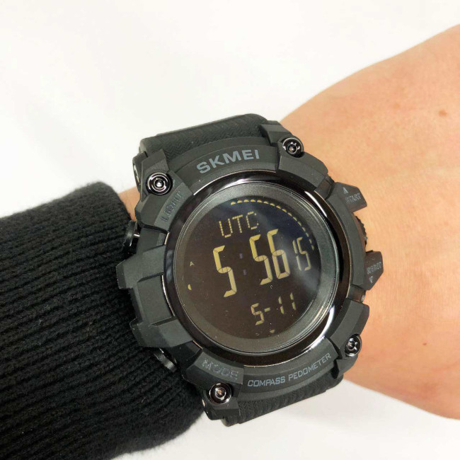 Годинник оснащений рядом корисних функцій, серед яких крокомір, компас, секундомір, будильник та світовий час. Яскраве підсвічування дозволяє користуватися годинником у темряві, а міцний ремінець забезпечує комфортну фіксацію на руці. Це чудовий вибір для тренувань, подорожей та щоденного використання.
