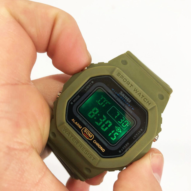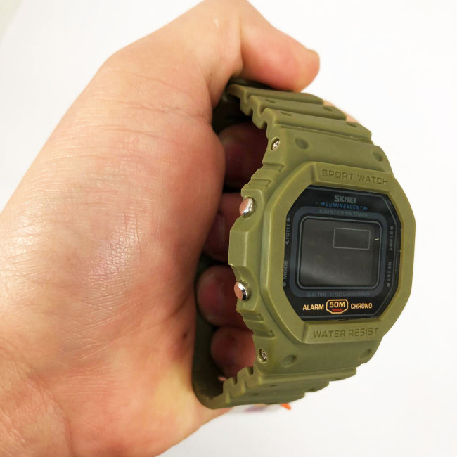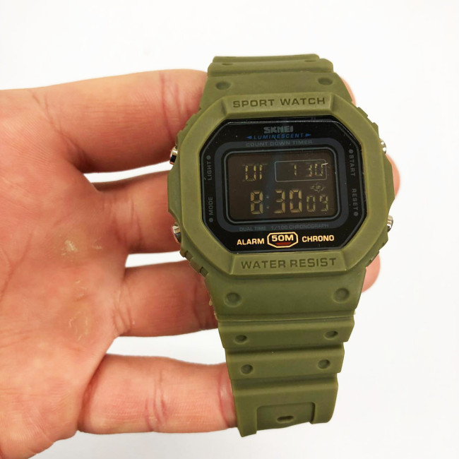 Цей годинник стане незамінним супутником у спорті, на природі чи в повсякденному житті. Оснащений хронографом, будильником, таймером, підсвіткою та режимом відображення двох часових зон. Водонепроникність до 50 метрів дозволяє не знімати його під час дощу або миття рук. Компактність, зручне керування та витривалий корпус — усе, що потрібно для функціонального аксесуара на кожен день.
