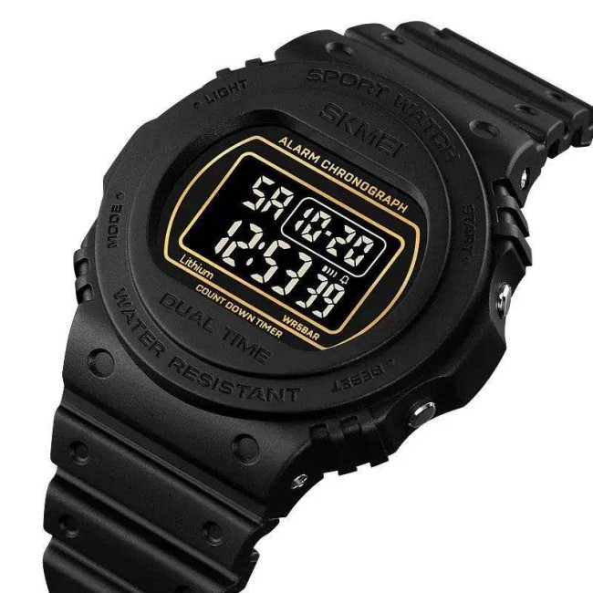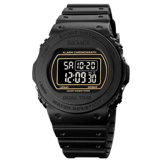 Годинник SKMEI 1776BKBK — це надійна цифрова модель у класичному спортивному стилі. Його круглий корпус з матовим чорним покриттям та мінімалістичний дисплей із жовтою графікою надають годиннику впевненого та стриманого вигляду. Завдяки компактному форм-фактору та зручному поліуретановому ремінцю, модель чудово підходить для щоденного використання як у місті, так і під час активного відпочинку.
