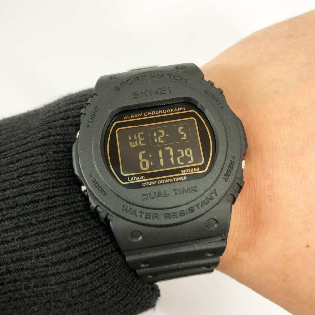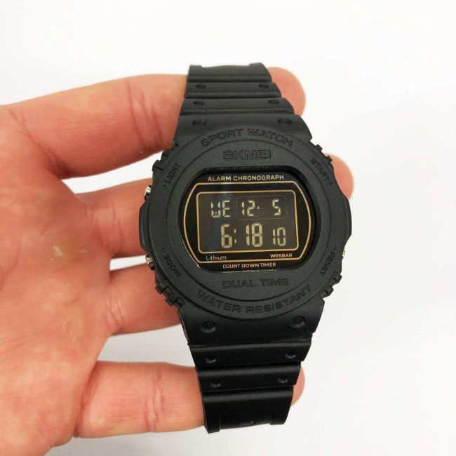 SKMEI 1776BKBK має всі основні функції: подвійний час, будильник, секундомір, таймер зворотного відліку, підсвітка, індикація дати й дня тижня, а також формат часу 12/24 години. Водозахист 5 ATM дозволяє не знімати годинник при дощі, митті рук чи під час тренувань. Це ідеальний вибір для тих, хто цінує простоту, функціональність і витривалість.