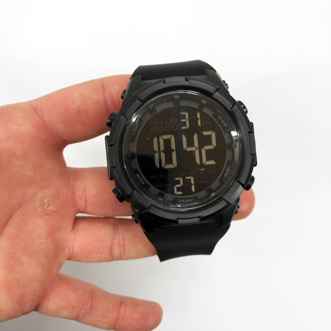 Модель має усі необхідні функції: поточний час, дата, день тижня, будильник, секундомір, підсвітка дисплея, подвійний час, а також підтримку 12/24-годинного формату. Водонепроникність до 50 метрів дозволяє не турбуватись під час дощу, фізичних вправ або короткочасного контакту з водою. Це надійний аксесуар, який витримає щоденне використання та забезпечить точність у будь-якій ситуації.