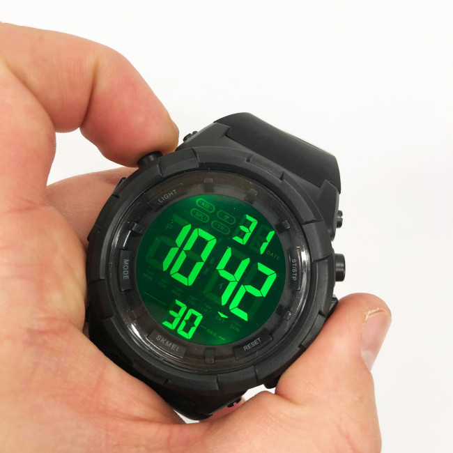- Функції: час, дата, день тижня, будильник, секундомір, подвійний час, підсвітка, 12/24-годинний формат