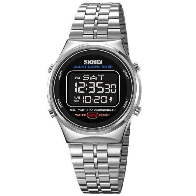 Модель оснащена всіма необхідними функціями: відображення часу, дати, дня тижня, будильник, секундомір, подвійний час і таймер зворотного відліку. Завдяки LED-підсвітці екран залишається читабельним у темний час доби. Водозахист до 30 метрів дозволяє не турбуватися про випадкові бризки або дощ. SKMEI 1882SIBK — це поєднання практичності, стилю та надійності за розумною ціною.