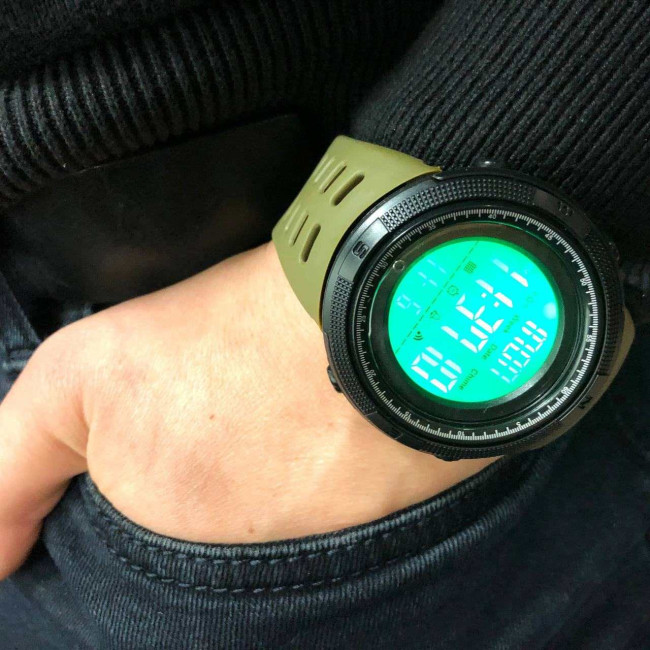 Годинник SKMEI 2070AGWT ARMY GREEN — це надійний цифровий аксесуар у військовому стилі, який чудово поєднує функціональність і лаконічний дизайн. Його масивний чорний корпус із текстурованим безелем контрастує із зеленим матовим ремінцем, створюючи брутальний образ, що пасує як до міського стилю, так і до активного відпочинку. Великий екран з інверсивною підсвіткою дозволяє легко зчитувати дані в будь-який час доби.