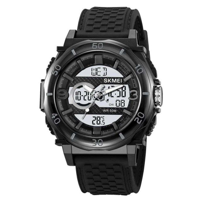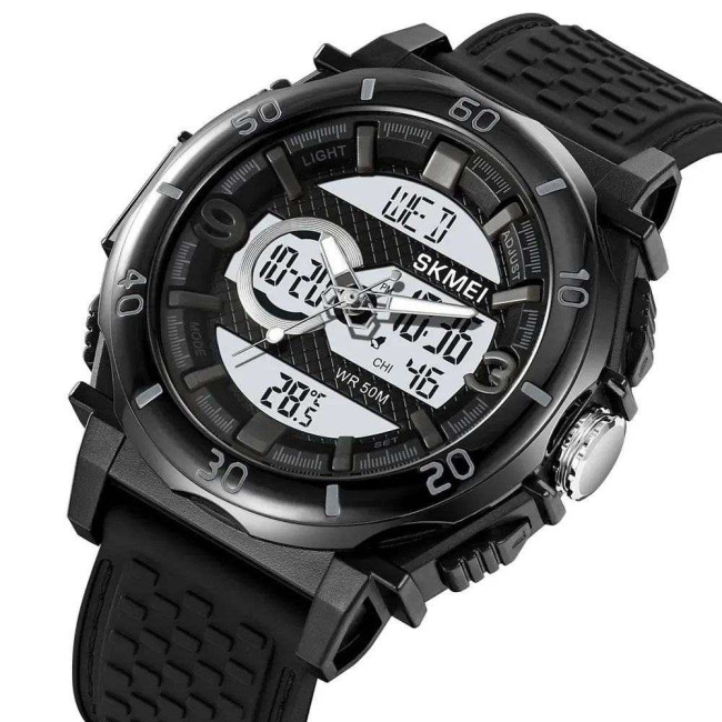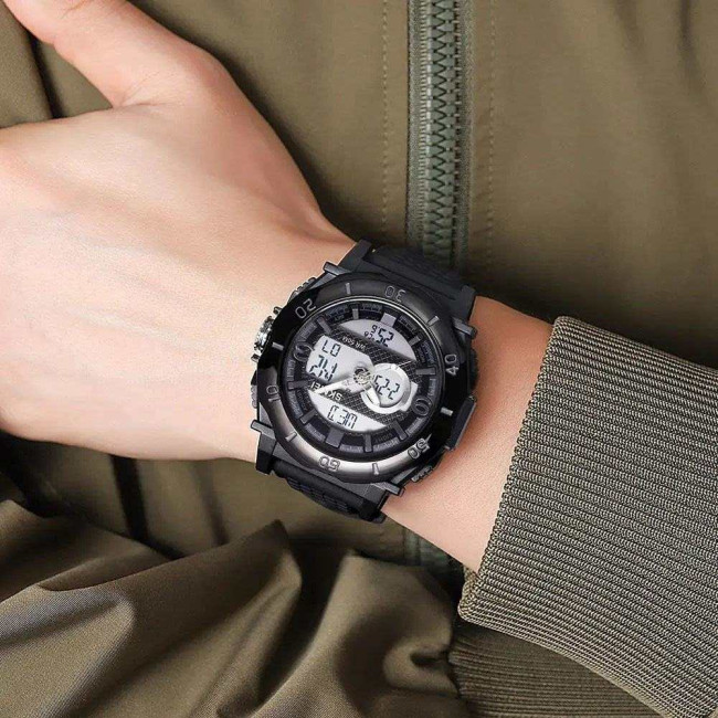 Модель оснащена розширеним набором функцій: секундомір, будильник, календар, відображення дня тижня та підсвітка для зручності у темний час доби. Водозахист до 50 метрів дозволяє використовувати годинник під час дощу або тренувань. SKMEI 2098BKWT стане надійним аксесуаром як для спорту, так і для повсякденного носіння, поєднуючи стиль, міцність та практичність.