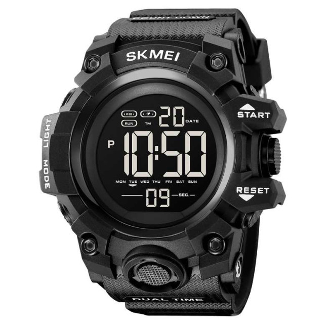Модель оснащена усіма необхідними функціями: поточний час, дата, день тижня, подвійний час, секундомір, таймер, будильник, підсвітка і водозахист до 50 метрів. SKMEI 2140BK стане надійним помічником як у місті, так і на природі завдяки витривалості, зручності та стильному зовнішньому вигляду.
