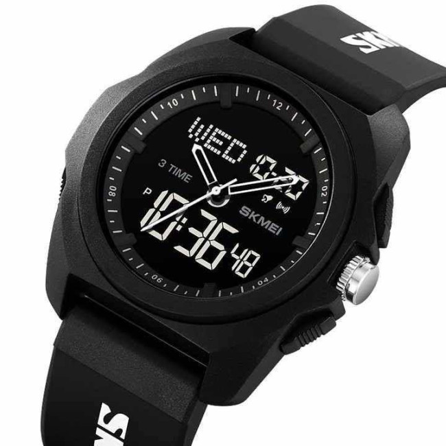 SKMEI 2199BK — це багатофункціональний годинник із мінімалістичним дизайном, який поєднує в собі надійність і сучасний стиль. Його глибокий чорний колір, масивний корпус і контрастний дисплей створюють відчуття сили та впевненості. Аналогова індикація в парі з цифровими елементами забезпечує зручне зчитування часу у будь-яких умовах — як при яскравому світлі, так і в темряві.