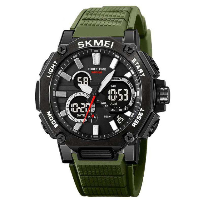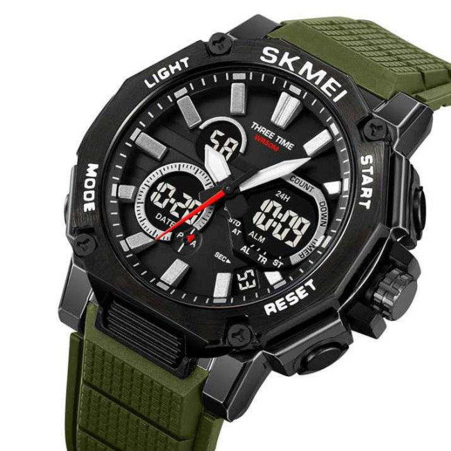 Годинник SKMEI 2219AG розроблений для активних людей, які потребують надійного інструменту на щодень. Підтримка трьох часових поясів, будильник, секундомір, таймер зворотного відліку, підсвітка та автоматичний календар — усе це втілено в одному пристрої. Завдяки водозахисту 50M модель витримує дощ і не потребує зняття під час миття рук або фізичних навантажень.