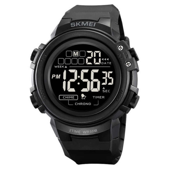 SKMEI 2260BKBK — це цифровий годинник з агресивним дизайном та круглим дисплеєм, створений для активних чоловіків. Повністю чорне виконання, рельєфний корпус і великі кнопки надають моделі спортивного вигляду та забезпечують зручне керування. Контрастний дисплей з великими цифрами легко читається навіть під час інтенсивного руху або в умовах слабкого освітлення.