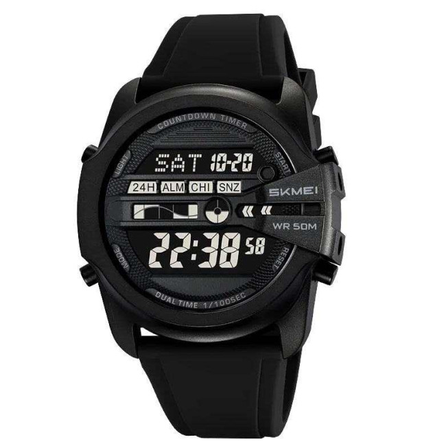 SKMEI 2442BK — це цифровий годинник у футуристичному стилі, створений для тих, хто цінує функціональність та унікальний зовнішній вигляд. Масивний корпус і контрастна графіка на дисплеї створюють ефект потужного техно-аксесуару, який точно не залишиться непоміченим. Завдяки ергономічному силіконовому ремінцю годинник зручно сидить на руці навіть при тривалому носінні.