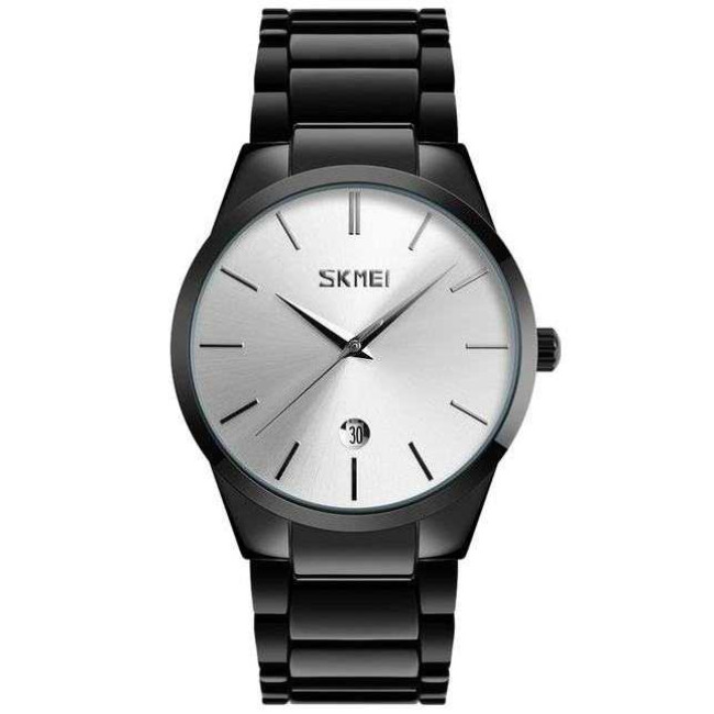 Модель має точний кварцовий механізм та оснащена практичним віконцем дати, розташованим у нижній частині циферблата. Корпус і браслет виготовлені з металу з глянцевим покриттям, яке надає виробу преміального вигляду та забезпечує стійкість до зносу. SKMEI 9140BKSI — це вибір для тих, хто цінує лаконічність і стиль у кожній деталі.