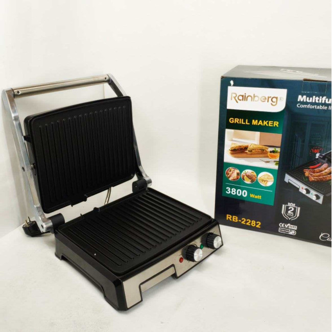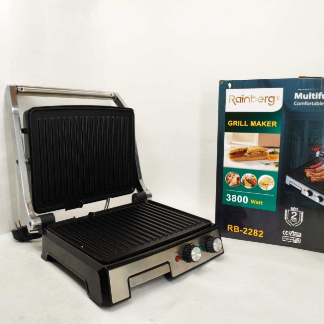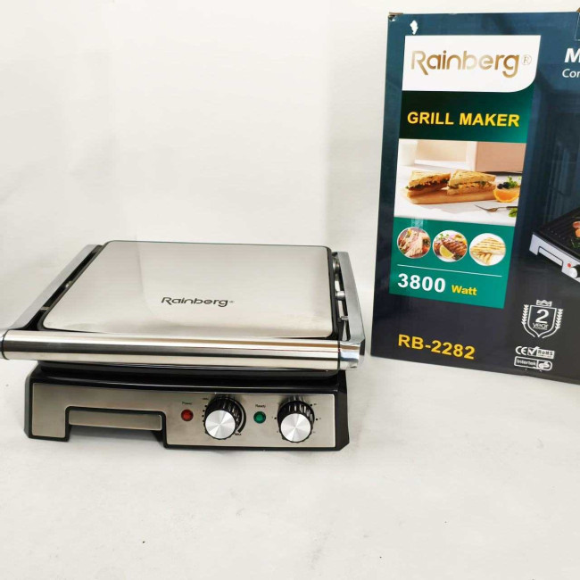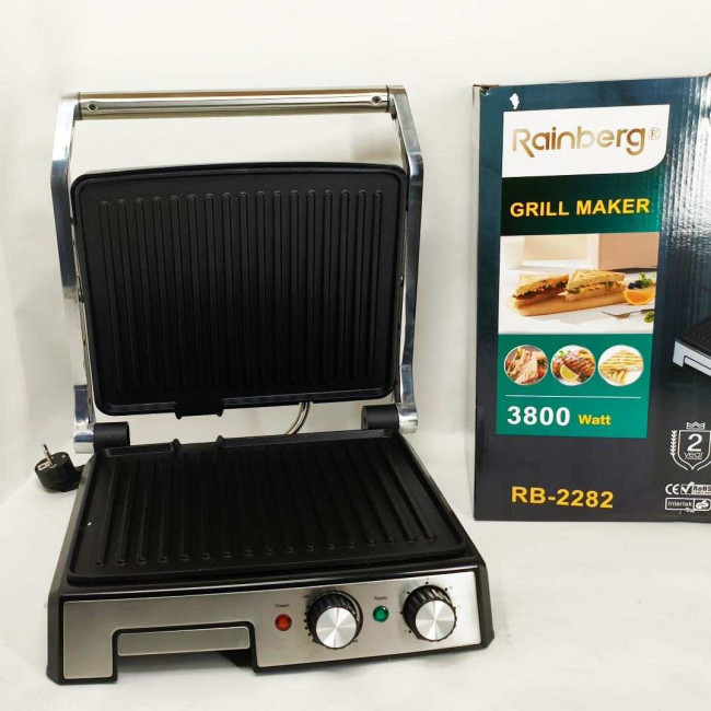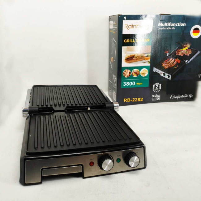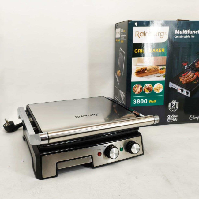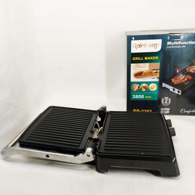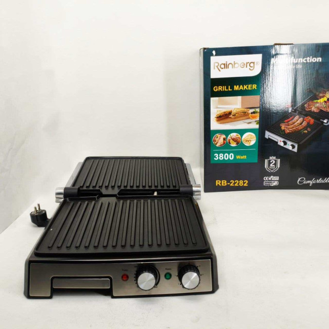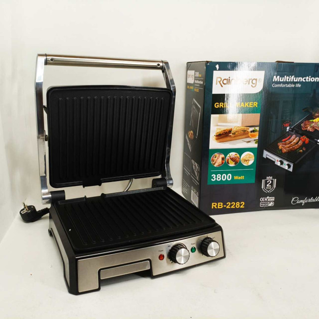 Гриль двосторонній німецької якості Rainberg RB-2282 притискний електричний гриль із пластинами 3800Вт