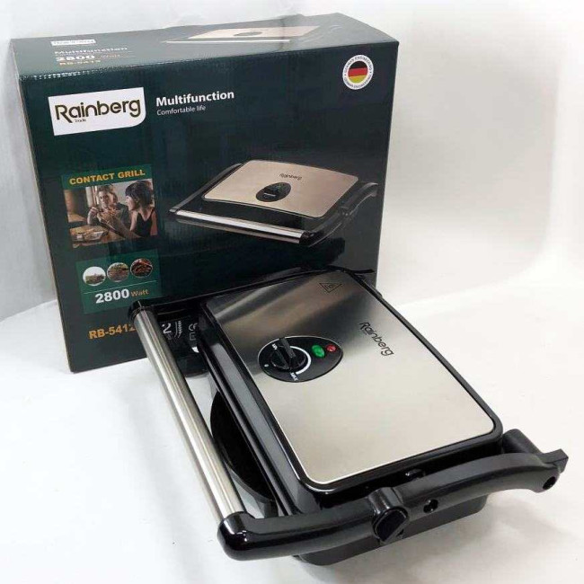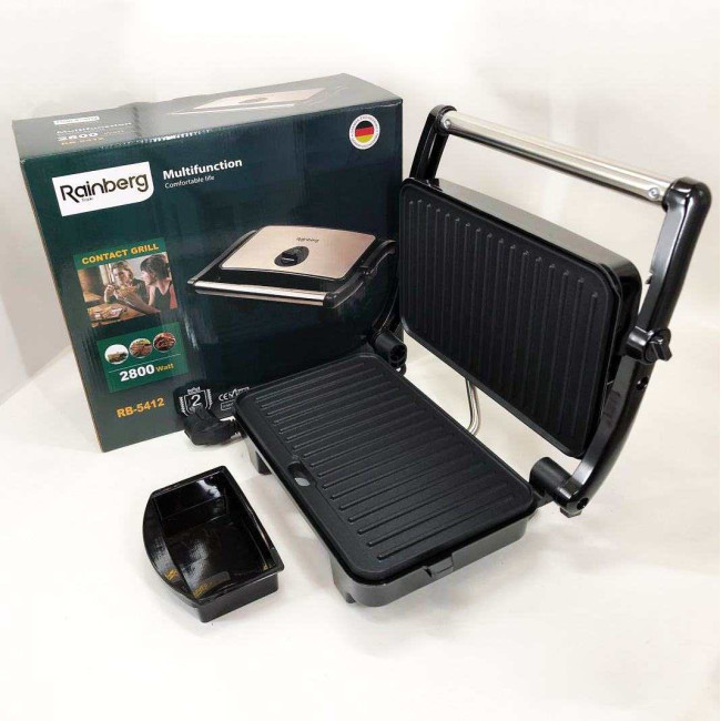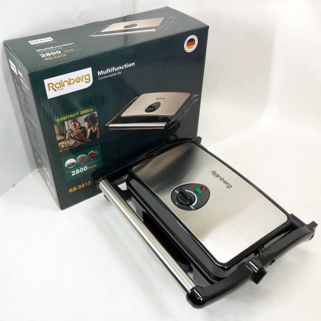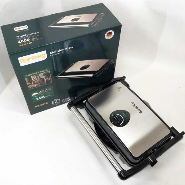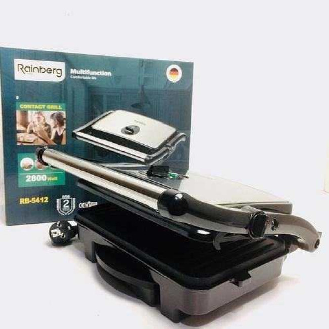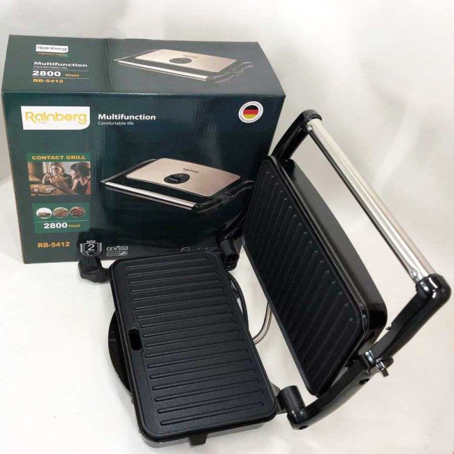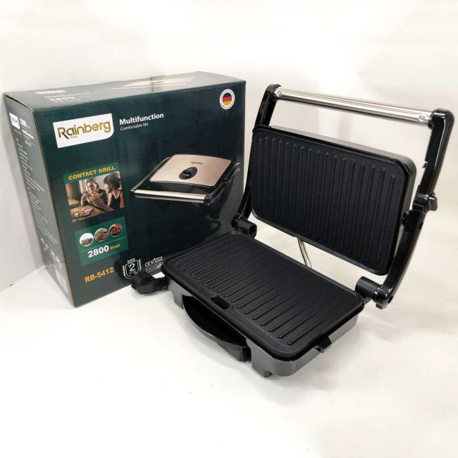 Гриль притискний Rainberg RB-5412 2800 Вт, Гриль для шаурми для дому, Гриль двосторонній контактний