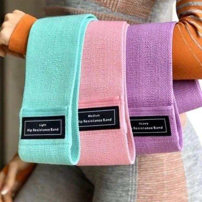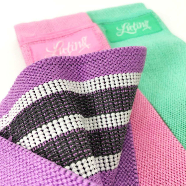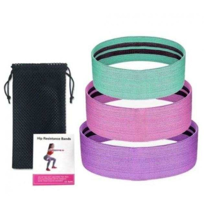 У набір входить 3 яскраві резинки тканини різного рівня опору: легкий (зелена) є самою «слабкою» серед інших, володіючи силою натягу 10-15 кг; середня (рожева): середня тканинна гумка здатна похвалитися підвищеним рівнем опору, витримуючи 15-20 кг; важкий (фіолетова): найсильніша серед гумок і має силу натягу в 20-25 кг.
