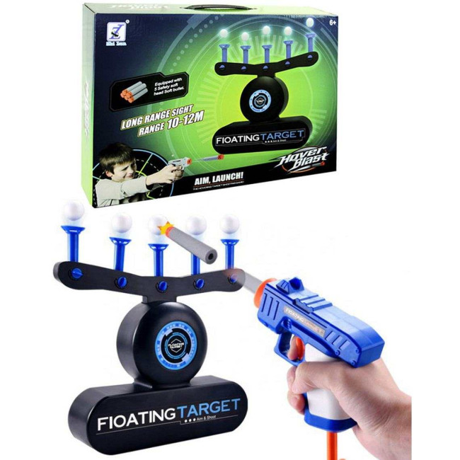 Ігровий набір повітряний тир Hover Blast складається з бази, бластерів, пінних патронів та кульок. Суть гри полягає в тому, що потрібно потрапити в кульки, які не просто лежать, а ширяють у повітрі. В базу вбудований вентилятор, який подає повітря в сопла, на яких розташовуються кульки. Вентилятор піднімає кульки на висоту і не дає їм опускатися, тримаючи їх у повітрі!