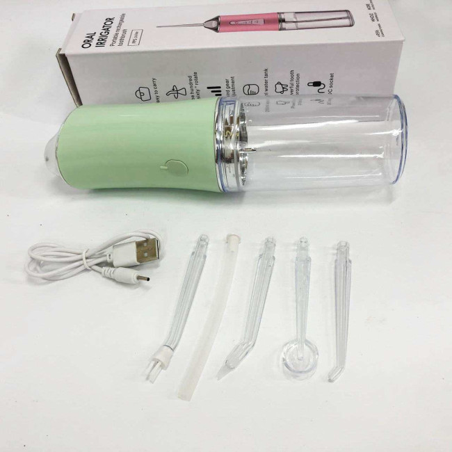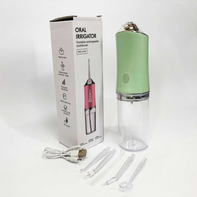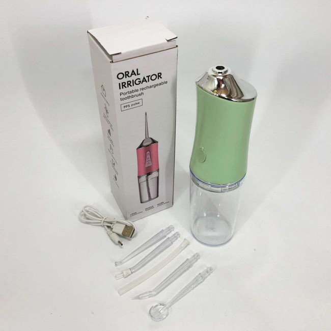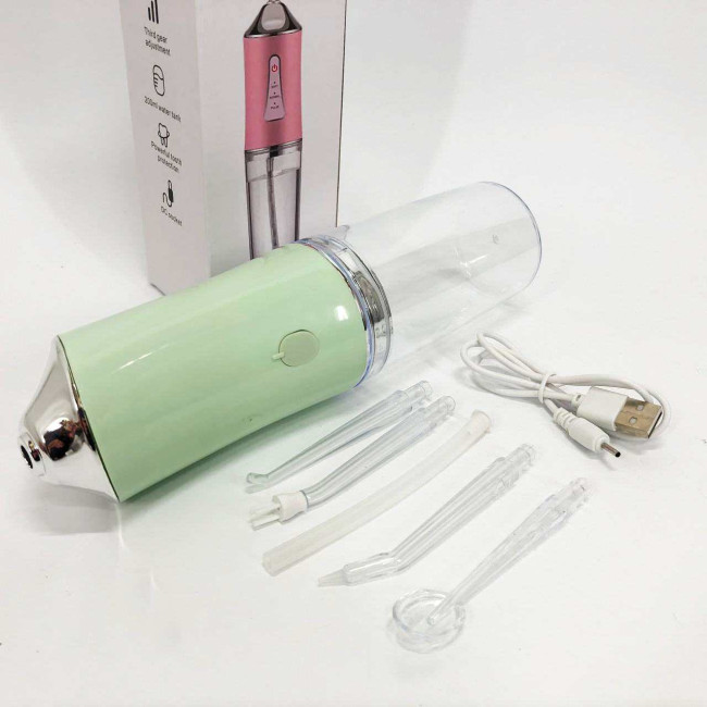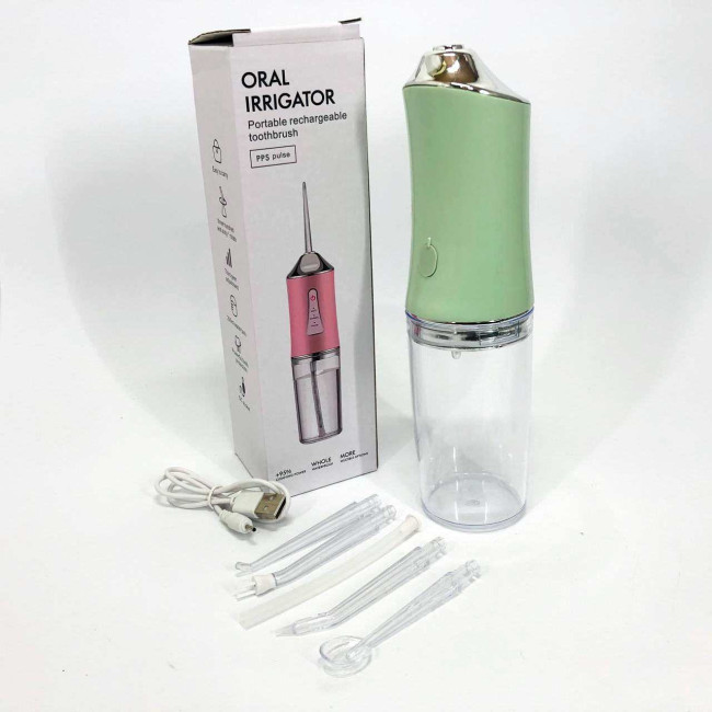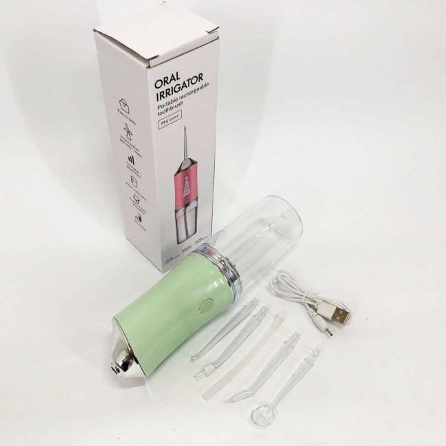 Іригатор для чищення зубів та порожнини рота Oral Irrigator з акумулятором та змінними насадками. Колір: зелений