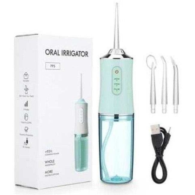 Портативний іригатор ротової порожнини Portable Oral Irrigator – високотехнологічний пристрій для підтримки максимальної гігієни ротової порожнини. Принцип дії ґрунтується на технології подачі пульсуючого струменя води під тиском, завдяки чому він ефективно проникає у проміжки між зубами, кишені та інші недоступні місця для звичайної зубної щітки та зубної нитки. Іригатор зубний ефективно видаляє зубний наліт, бактерії, залишки їжі, масажує ясна. Підвищує ефективність догляду за ротовою порожниною на 93% порівняно із звичайною зубною щіткою.