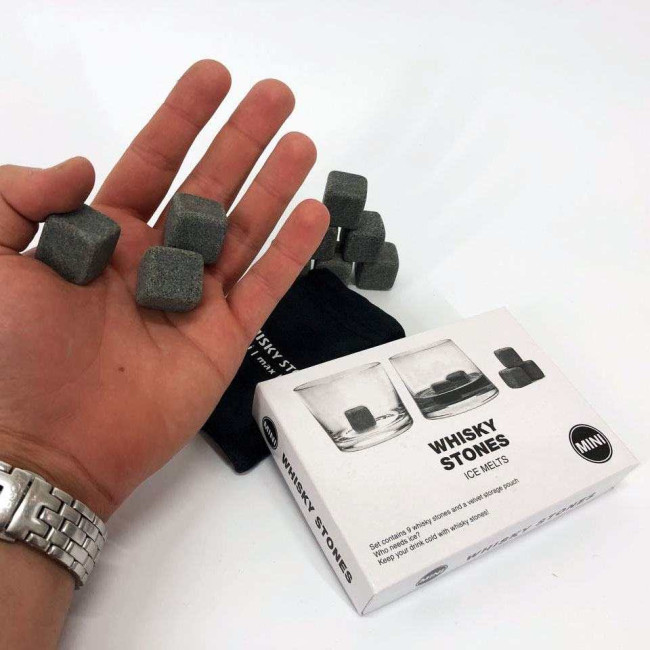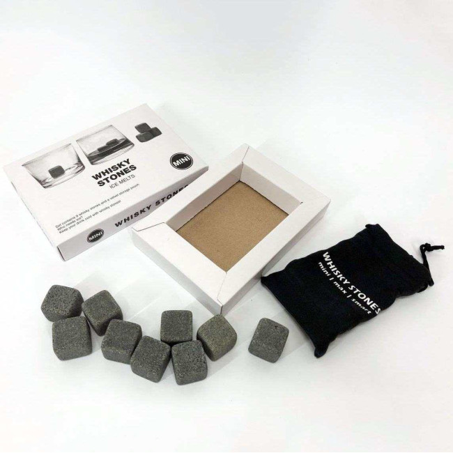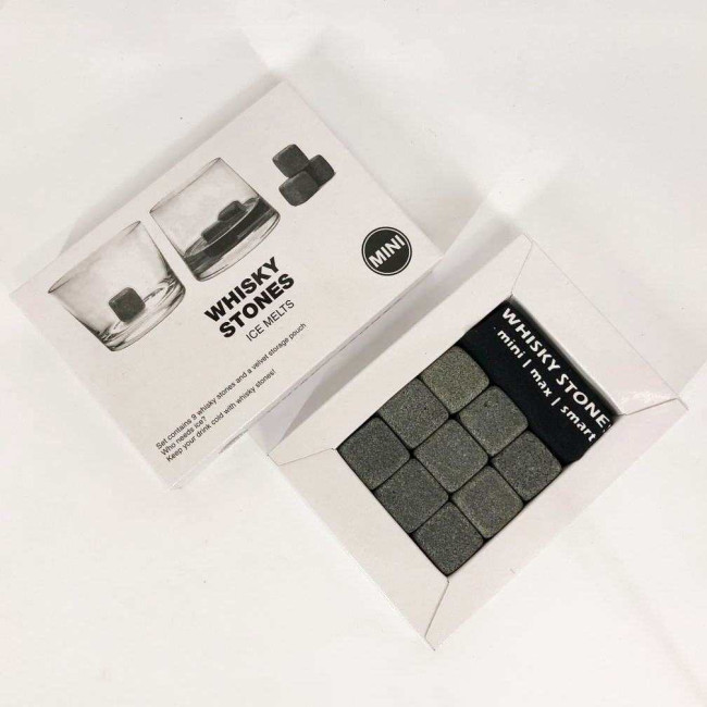 Для того щоб отримати максимальне задоволення від повністю розкритого букета та відчути весь спектр ароматів, необхідно купити каміння для віскі – натурального походження стеатити, які найкраще підходять для охолодження віскі природним способом без втрати смакових якостей. Камені для віскі продаються у вигляді невеликих кубиків, які після приміщення в морозильну камеру надовго зберігають свою температуру та охолоджують напій.