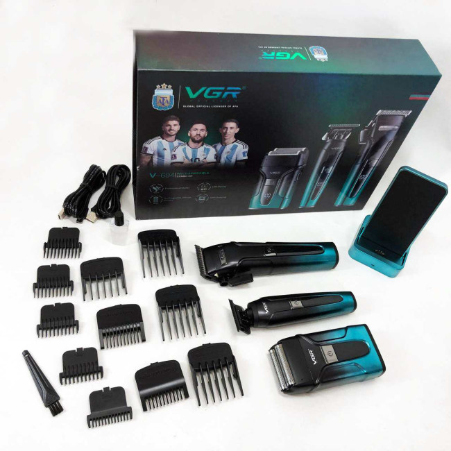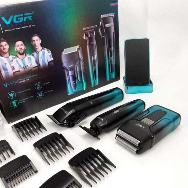 - VGR Professional Rechargeable Combo Kit V-694 є надійним, багатофункціональним набором для стрижки та гоління, який стане незамінним помічником з догляду за волоссям та бородою, забезпечуючи ефективність, зручність та тривалий термін служби.