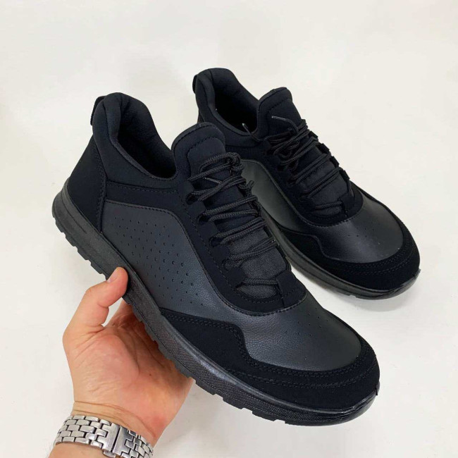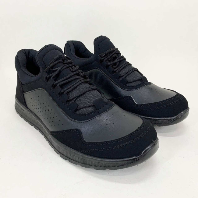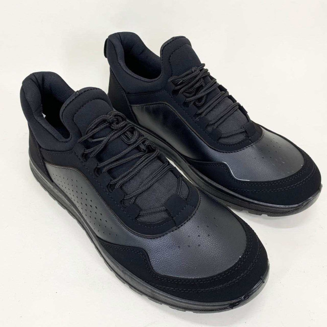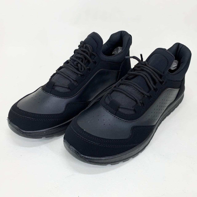 Утеплені чоловічі кросівки — це ідеальне рішення для холодного сезону, коли потрібне взуття, яке поєднує зручність, тепло і стиль. Модель виконана в універсальному чорному кольорі з комбінованих матеріалів: матової екошкіри, текстилю та вставок із замші. Акуратна перфорація з боків додає естетики та покращує вентиляцію.