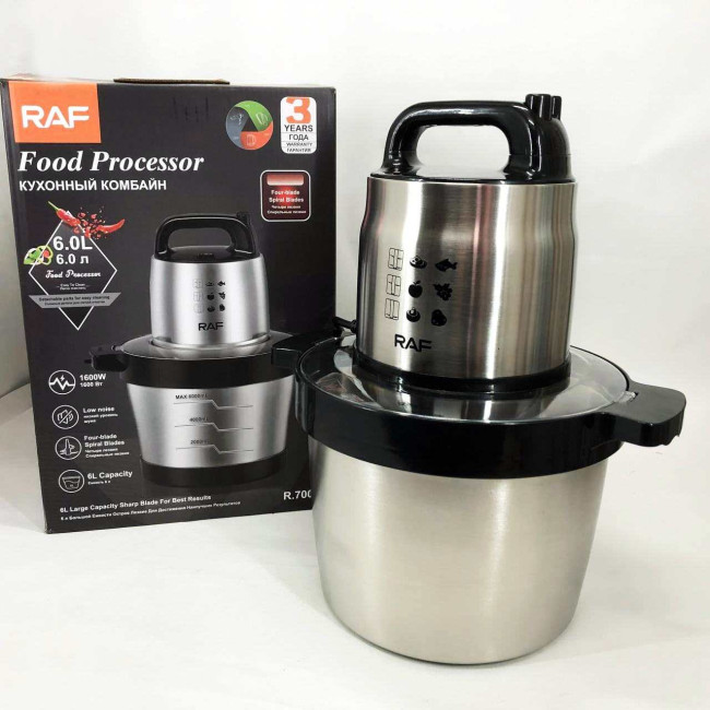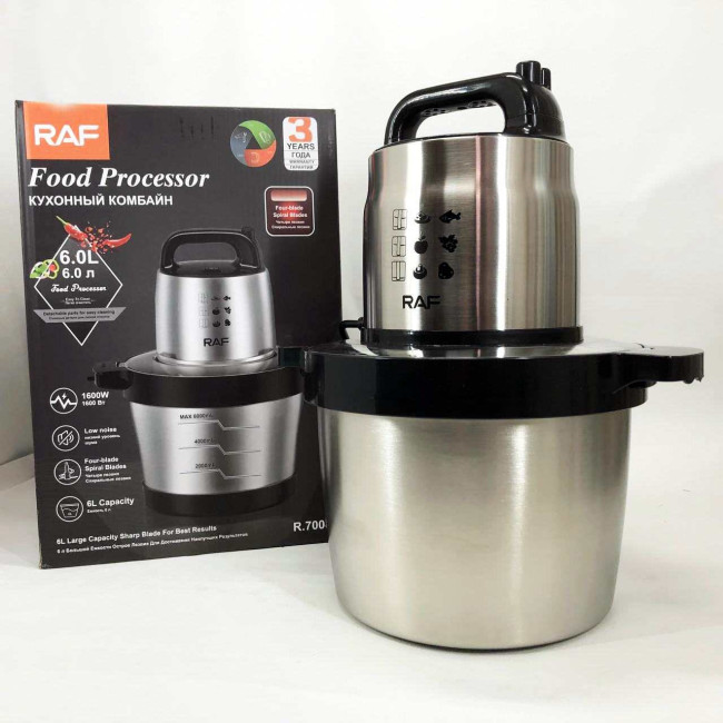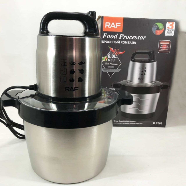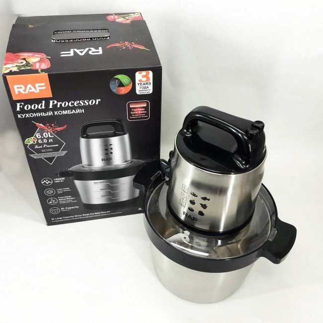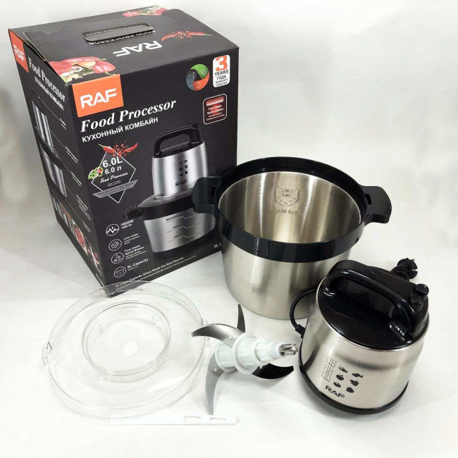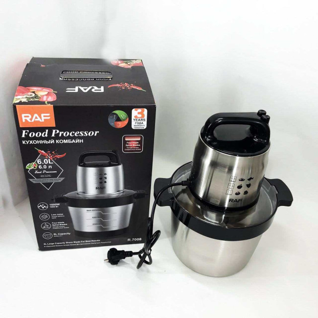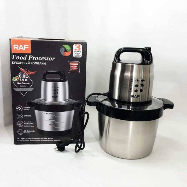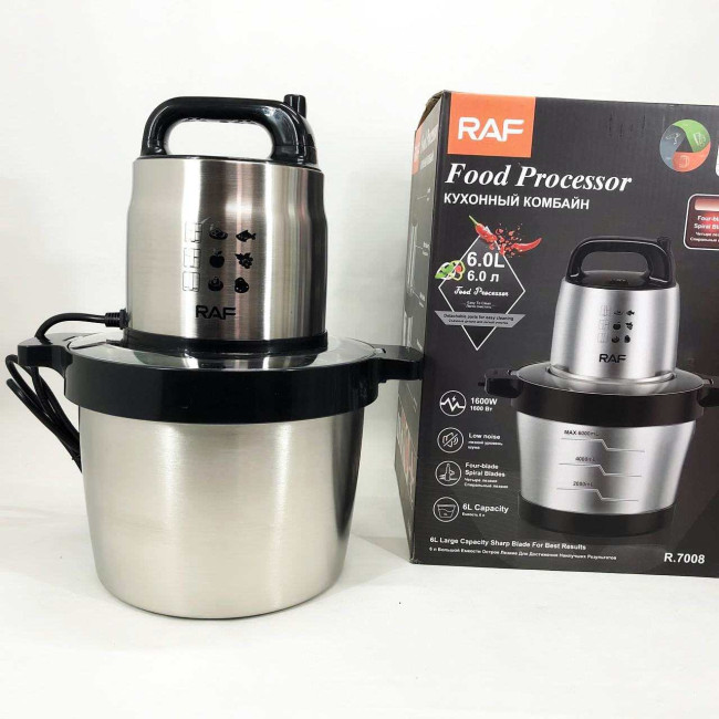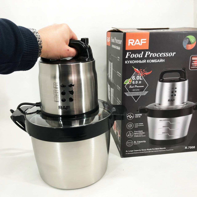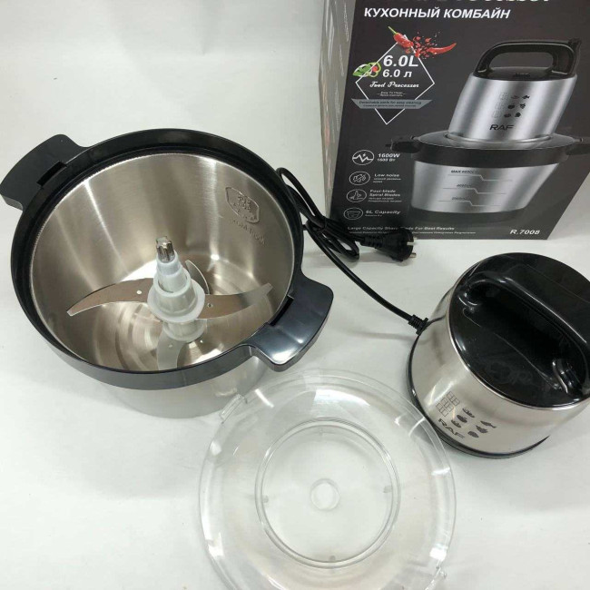 Кухонний блендер подрібнювач RAF R.7008 6 л 1600 Вт, Потужний подрібнювач з чашею нержавіюча сталь