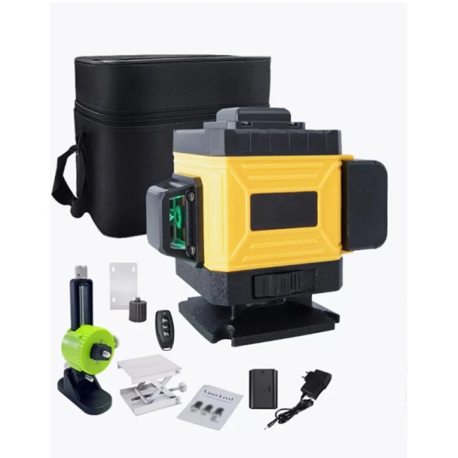 Лазерний рівень з треногою та 2 акумуляторами в сумці жовтий