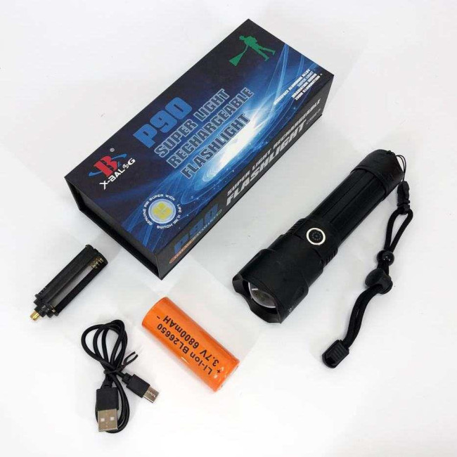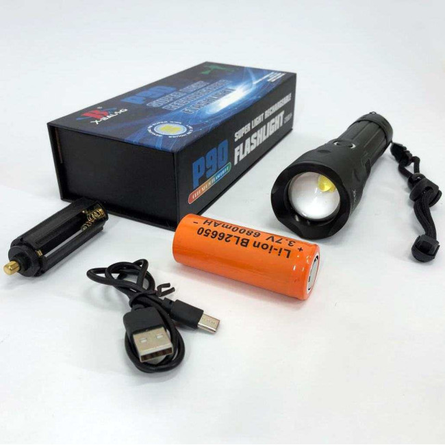 Характеристики яскравого ручного ліхтаря BL-A75-P90 з великим акумулятором 26650: