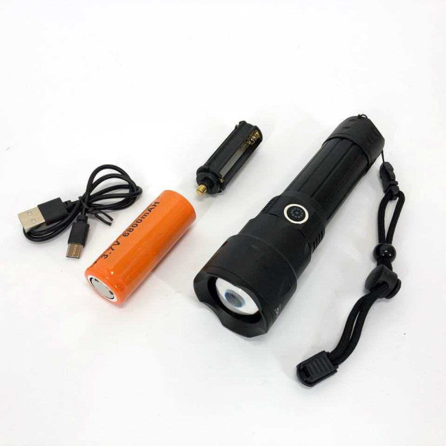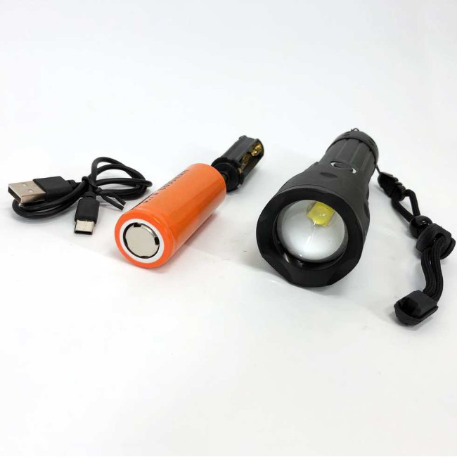 Заряджається ліхтар за сучасним стандартом Євросоюзу – USB Type-C. Кабель для заряджання йде в комплекті, разом з ємним акумулятором 26650 (який більший за стандартні акумулятори 18650 в 2 рази).