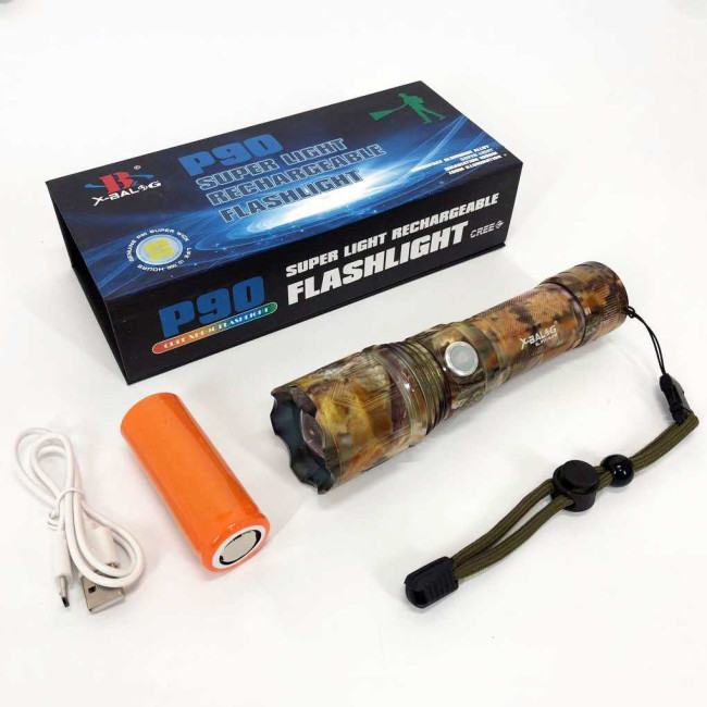 Ліхтарик ручний тактичний Bailong BL-P511M-P90 камуфляж, супер яскравий ліхтарик, потужний кишеньковий ліхтарик