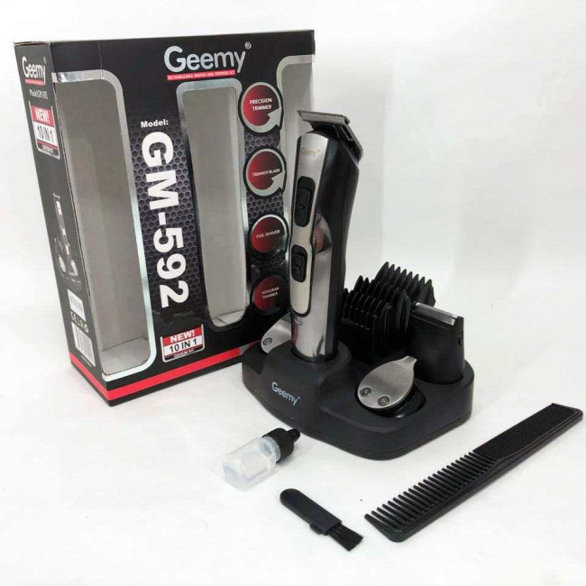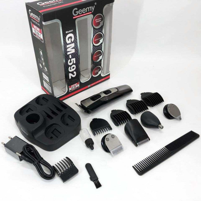 Машинка для стрижки 10в1 GEMEI GM-592, тример для бороди, триммер бездротової. Колір: чорний