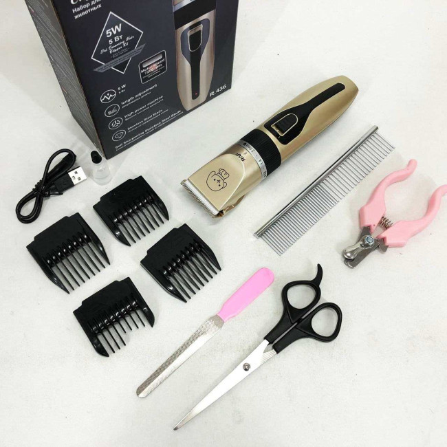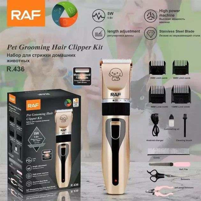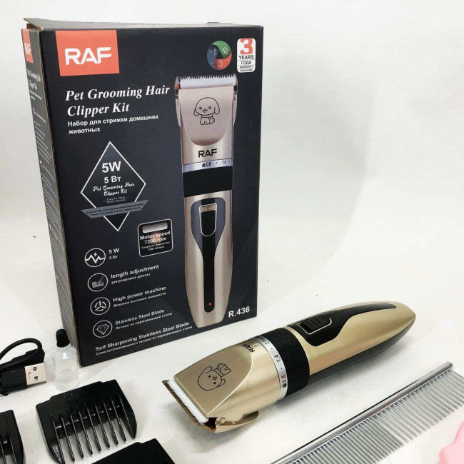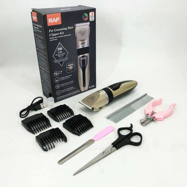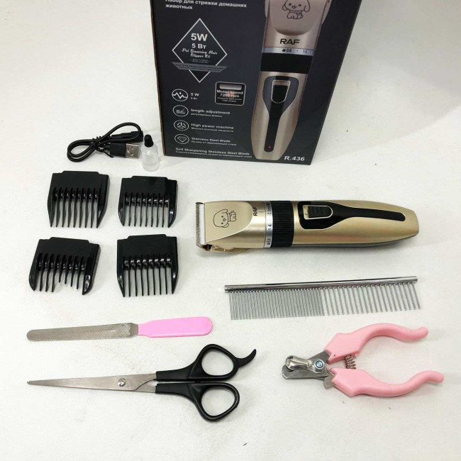 Машинка для стрижки собак і котів триммер машинки для грумінгу RAF R.436 набір для стрижки тварин