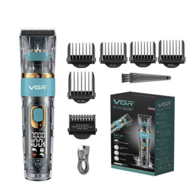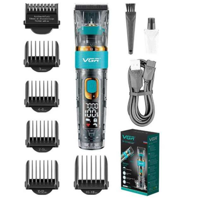 Машинка для стрижки волосся і бороди VGR V-695 з LED дисплеєм IPX7 вологозахист, Окантувальна машинка