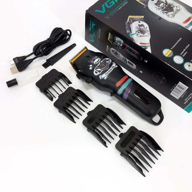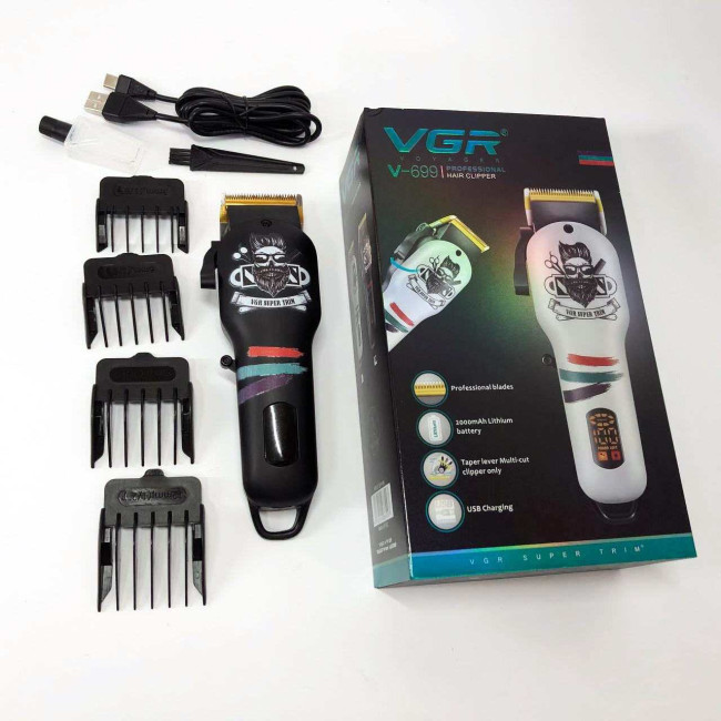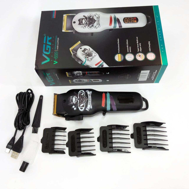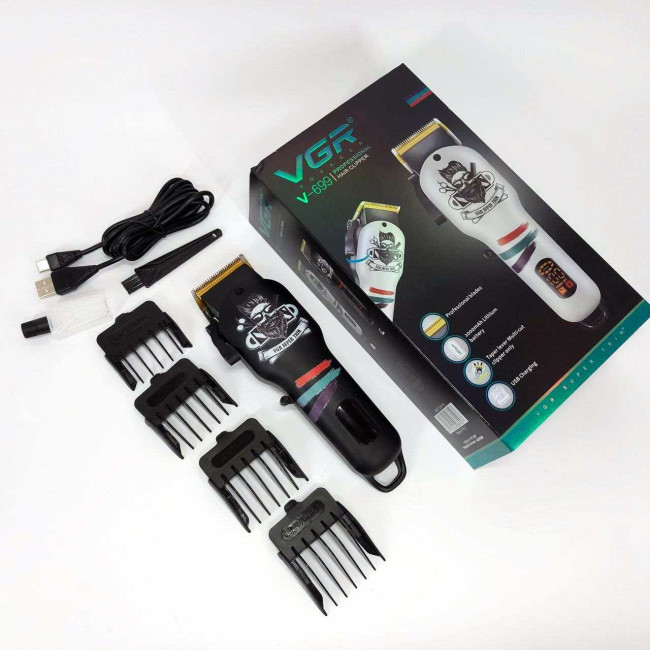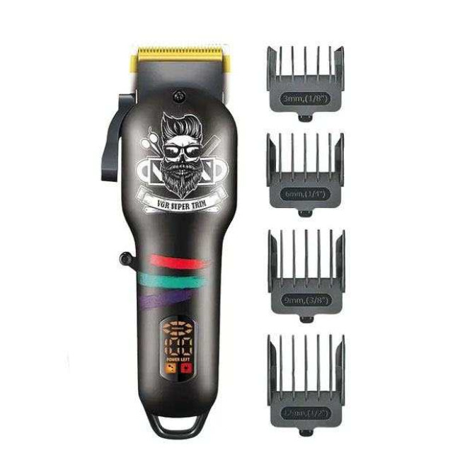 Машинка для стрижки волосся та бороди професійна VGR V-699 з насадками та LED дисплеєм. Колір: чорний