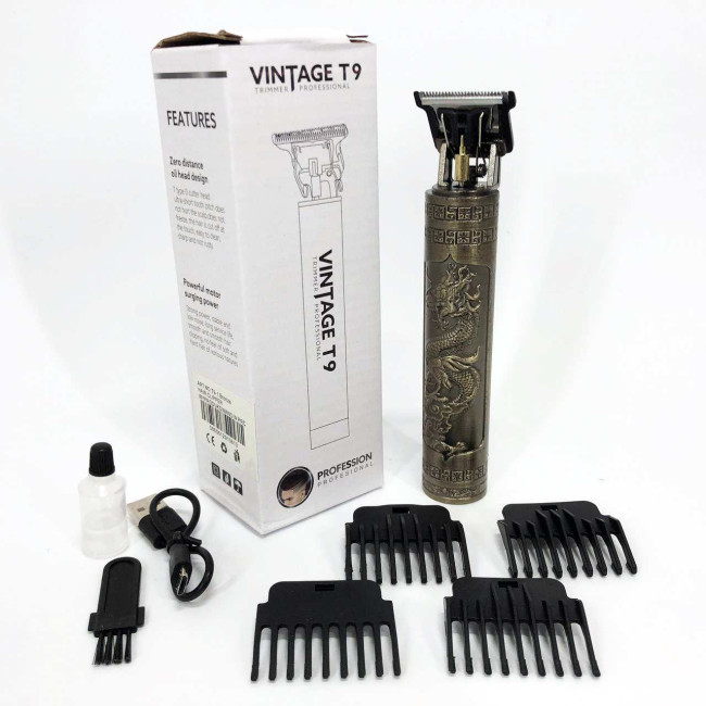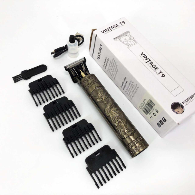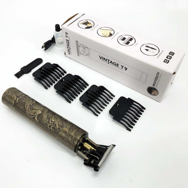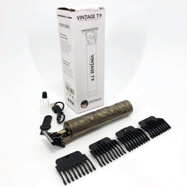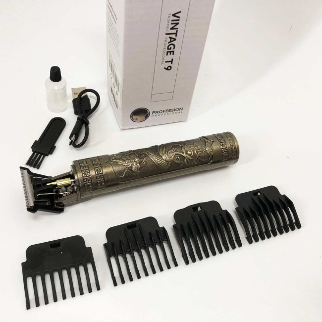Машинка для стрижки волосся Vintage T9-1 BRONZE 4 насадки