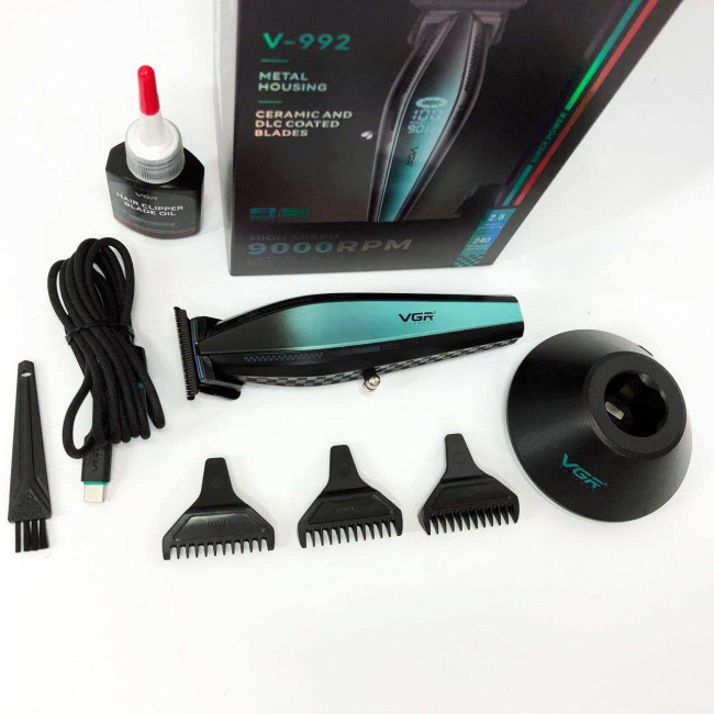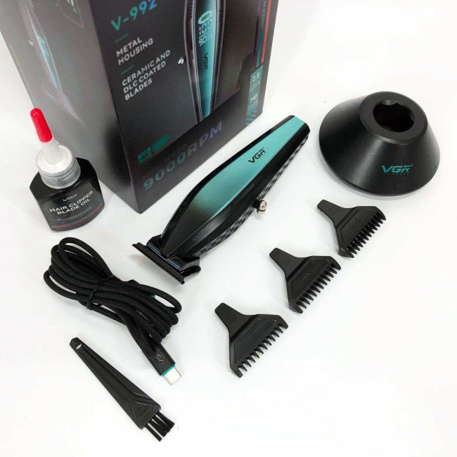 Машинка для стрижки волосся з потужним мотором XPRO VGR V-992 GREEN з насадками 1-2-3 мм