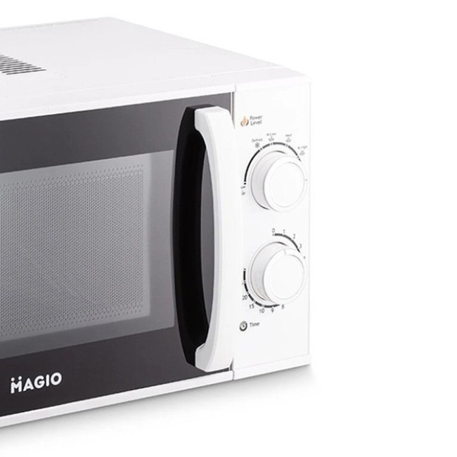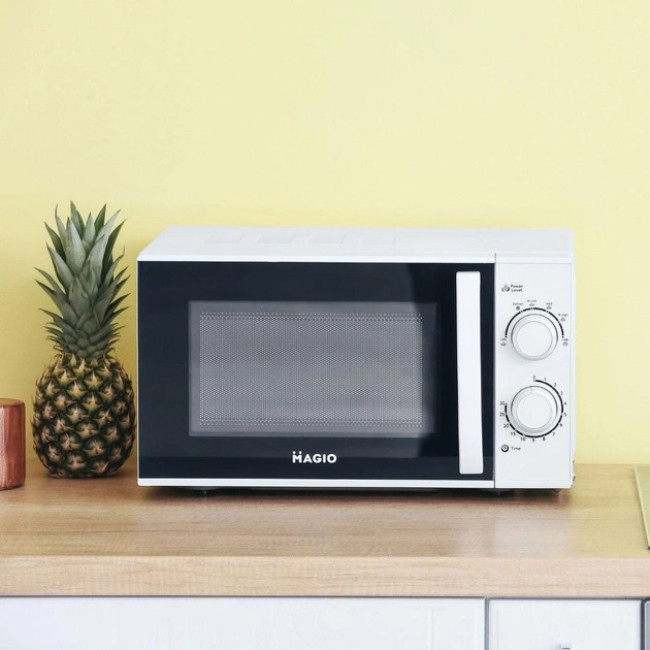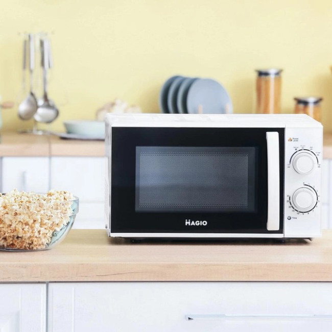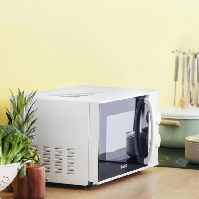 Magio MG-401 підходить для найрізноманітніших задач — від швидкого розігріву готових страв і напоїв до розморожування заморожених продуктів. Шість рівнів потужності забезпечують гнучкість: делікатний нагрів на мінімальному рівні або інтенсивне приготування при максимальній потужності. Завдяки компактним розмірам (262 мм у висоту, 350 мм у глибину та 455 мм у ширину) та вазі 10,9 кг, ця мікрохвильовка легко впишеться в будь-яке кухонне обладнання без втрати корисного простору.