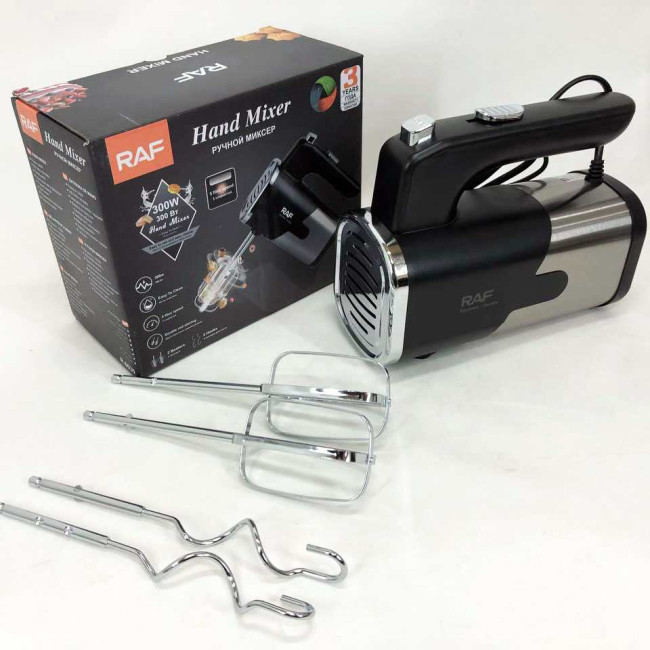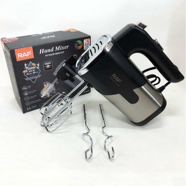 Міксер ручний на кухню RAF R-6630 5 швидкостей 2 насадки 300 W, двовінчиковий міксер, міксер для збивання